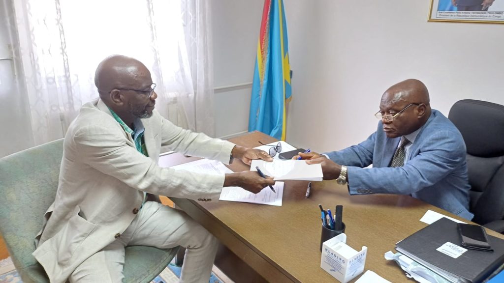 Le President de la République Démocratique du Congo S.E.M. Antoine Felix Tshilombo Tshisekedi S.E.M. Joseph KALALA MULAMBA Ambassadeur Extraordinaire et Plénipotentiaire Cérémonie de Remise et reprise entre SEM Joseph Kalala Mulamba et le Conseiller Malet Wa Malua Asoko