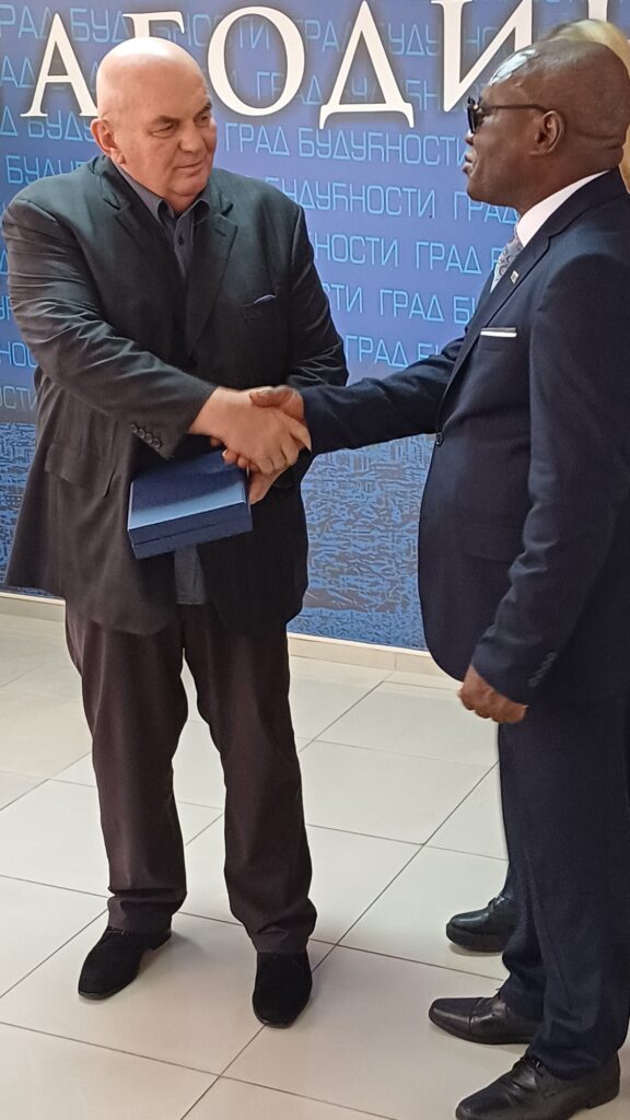 During this memorable visit, Ambassador Joseph Kalala was received by Mr Dragan Marković Palma, President of the Municipal Assembly of Jagodina (and former Mayor of the same town). HEM Joseph Kalala enthusiastically praised the impressive development of the town of Jagodina, home to some 36,092 inhabitants according to the 2011 census, and expressed his admiration for initiatives such as free public transport, which benefits the whole community.