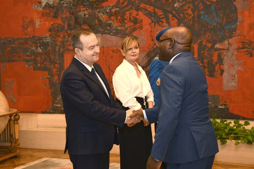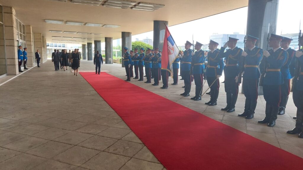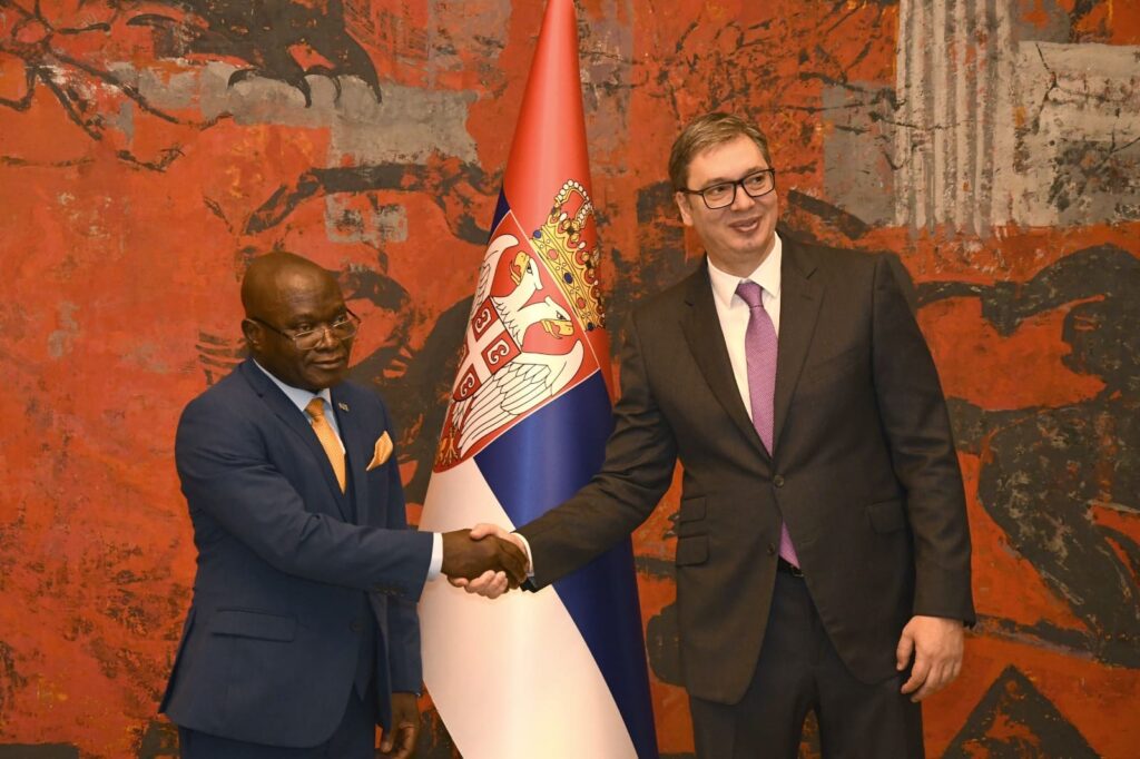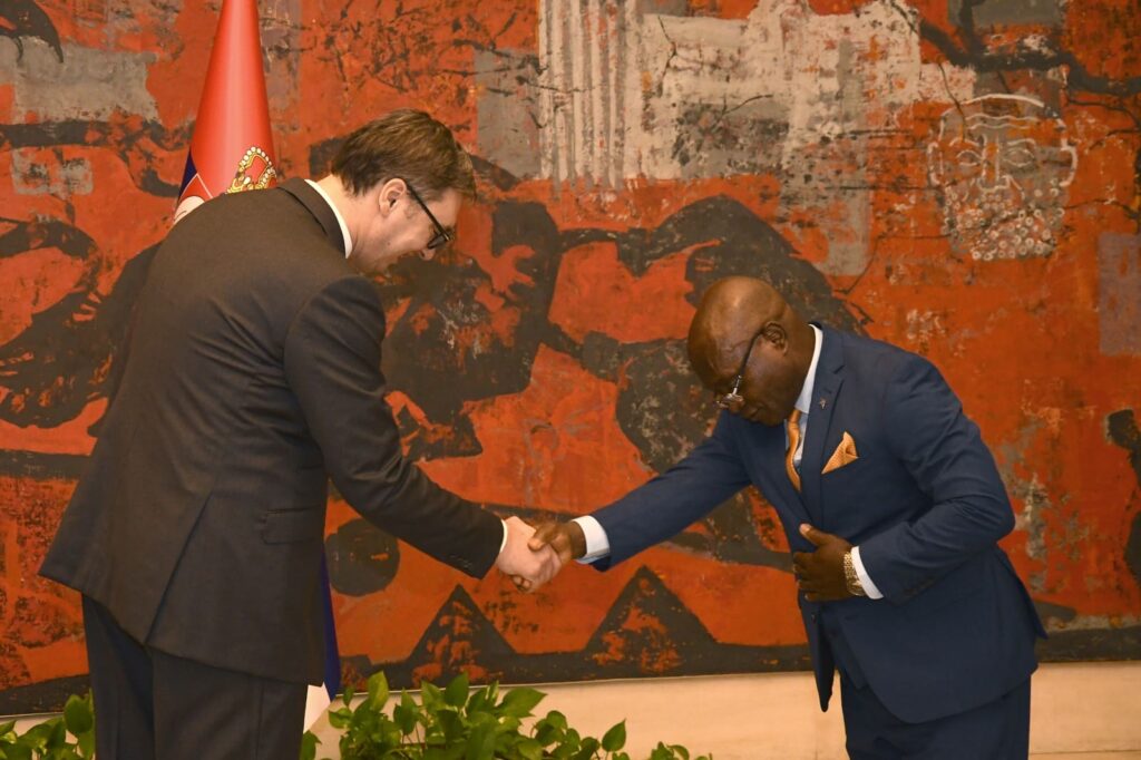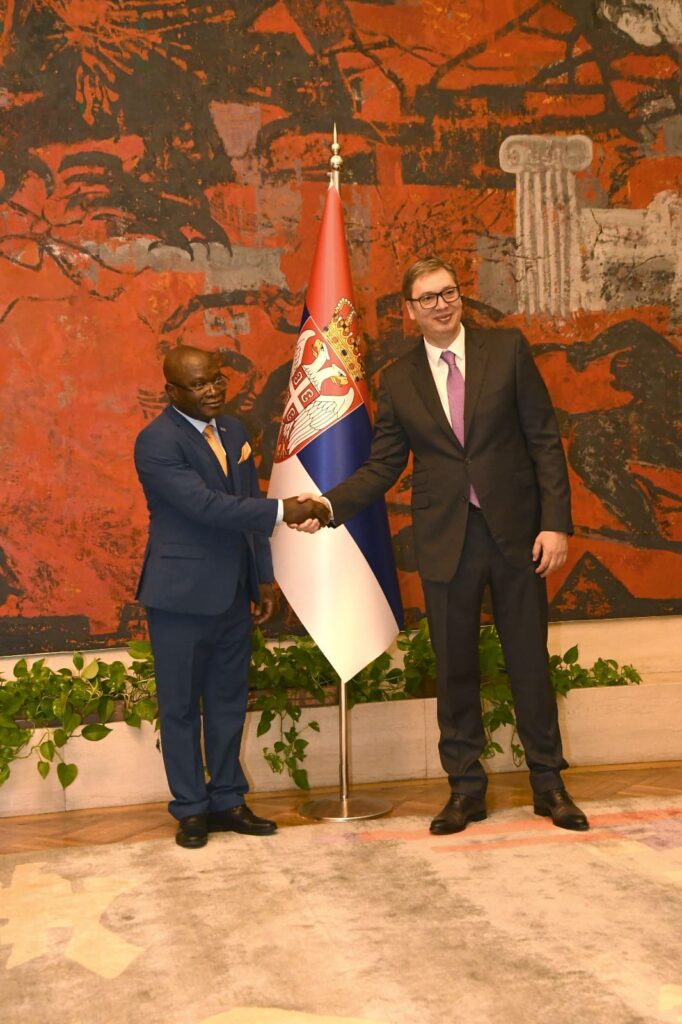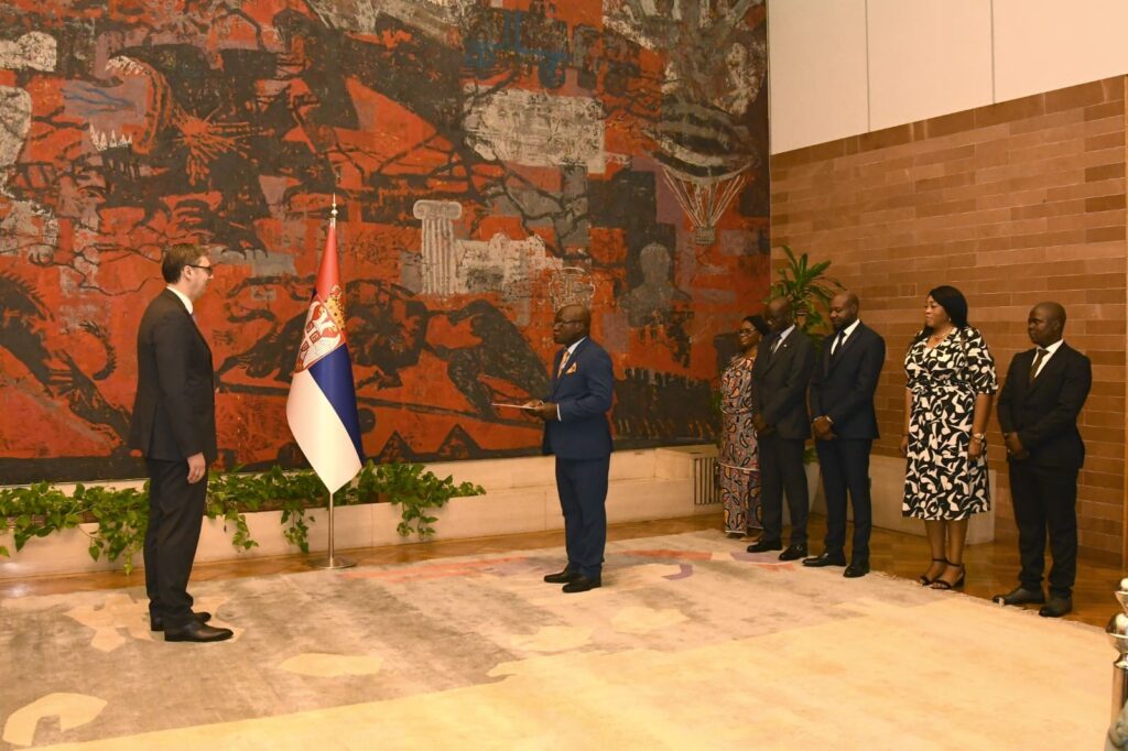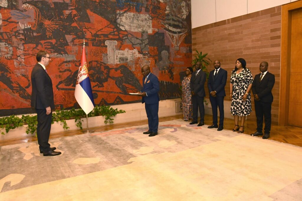 Presentation of Letters of Credence Ceremony Post author:sokondag Post published:30 July 2023 Post category:EMBASSY NEWS / PICTURES Our Ambassador HEM Kalala Mulamba Joseph presented his credentials on 25 July to the President of the Republic of Serbia His Excellency Mr Aleksandar VUČIĆ. Below are photos of the ceremony… You Might Also Like The African Union Celebration in Serbia: A Momentum of Solidarity and Friendship 29 June 2024 Official visit by Ambassador Joseph Kalala Mulamba to Jagodina – 9 November 2023 13 November 2023 Mr. Milorad Majkic presented his courtesies to HE Mr. Kalala Mulamba Joseph 4 August 2023
